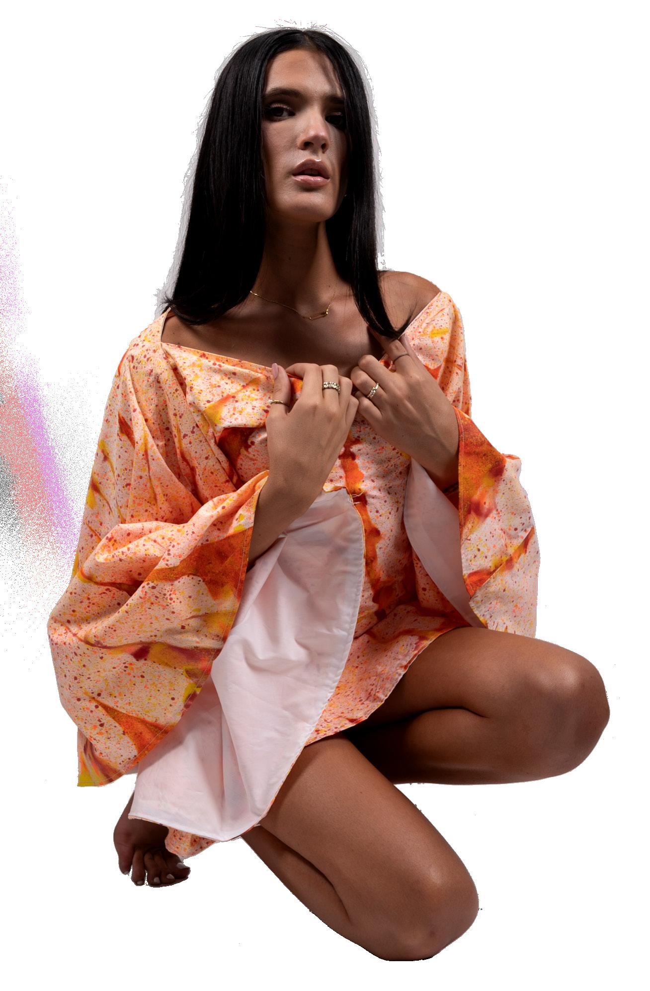 “Made By Madness” is a collection inspired by and dedicated to Liara’s best friend, Madison, who recently passed away and was known for her abstract drip paintings. Combining the friends’ two art forms - fashion and painting - this collection honors Madison’s memory.