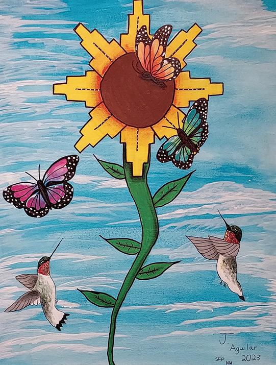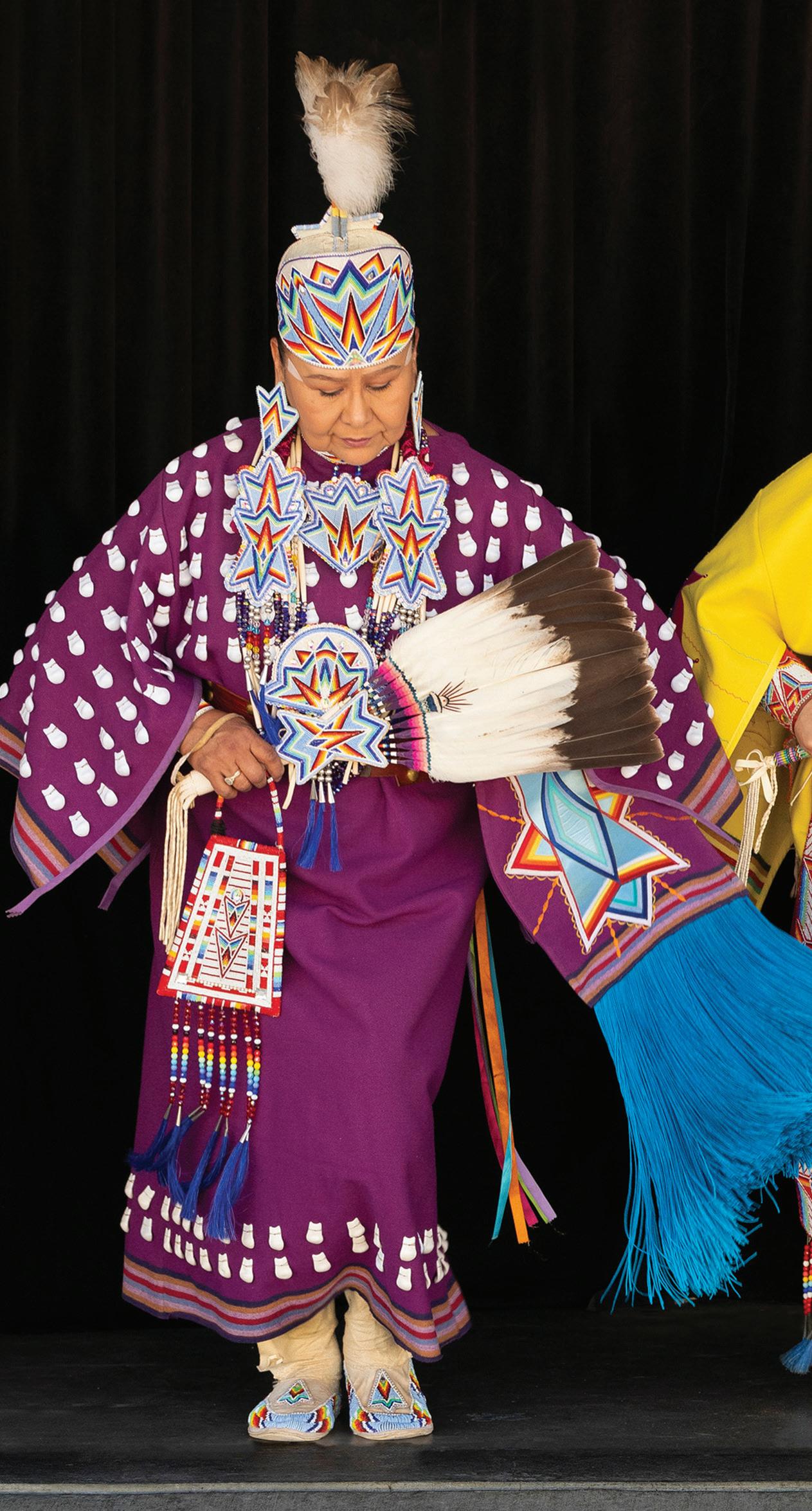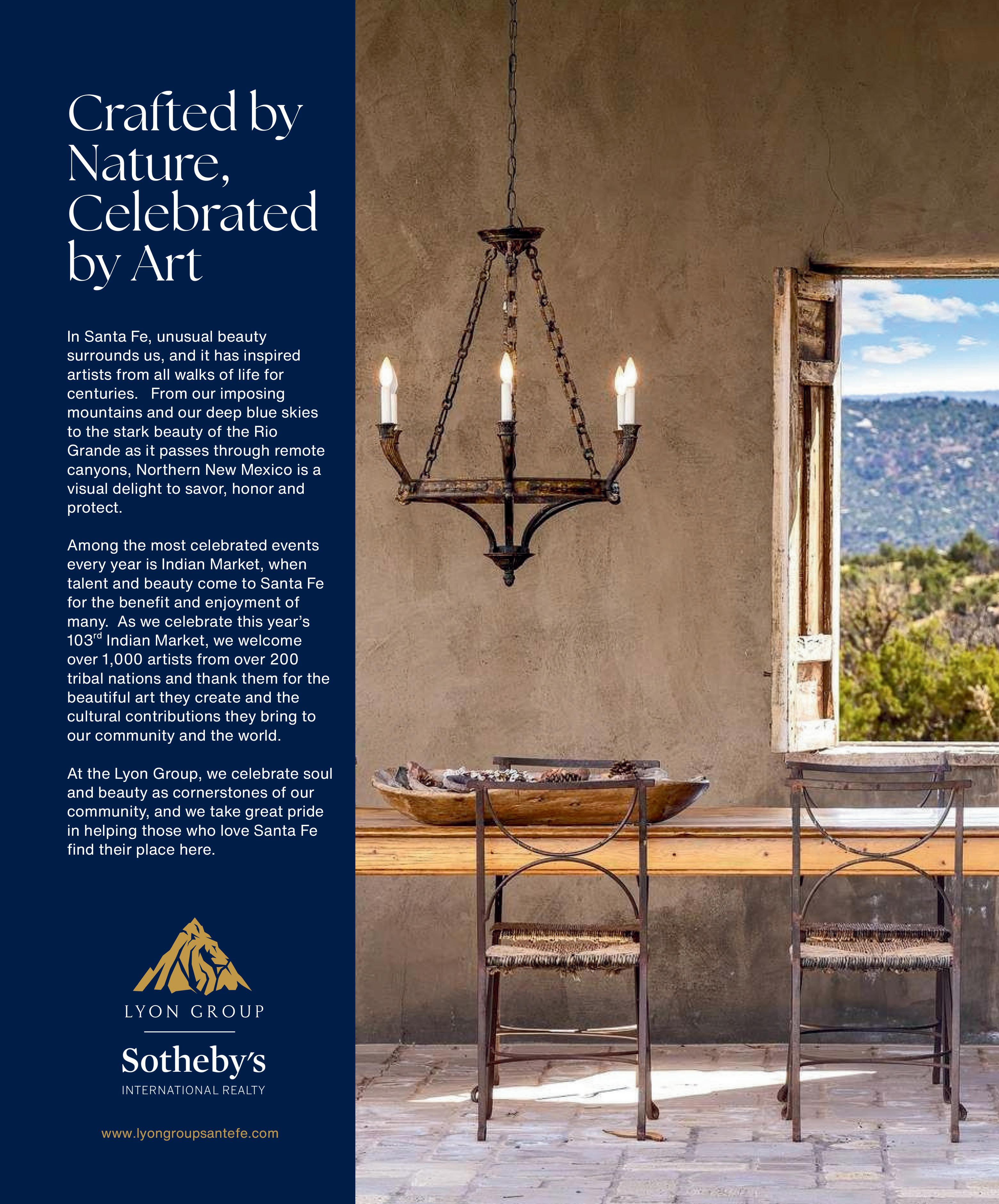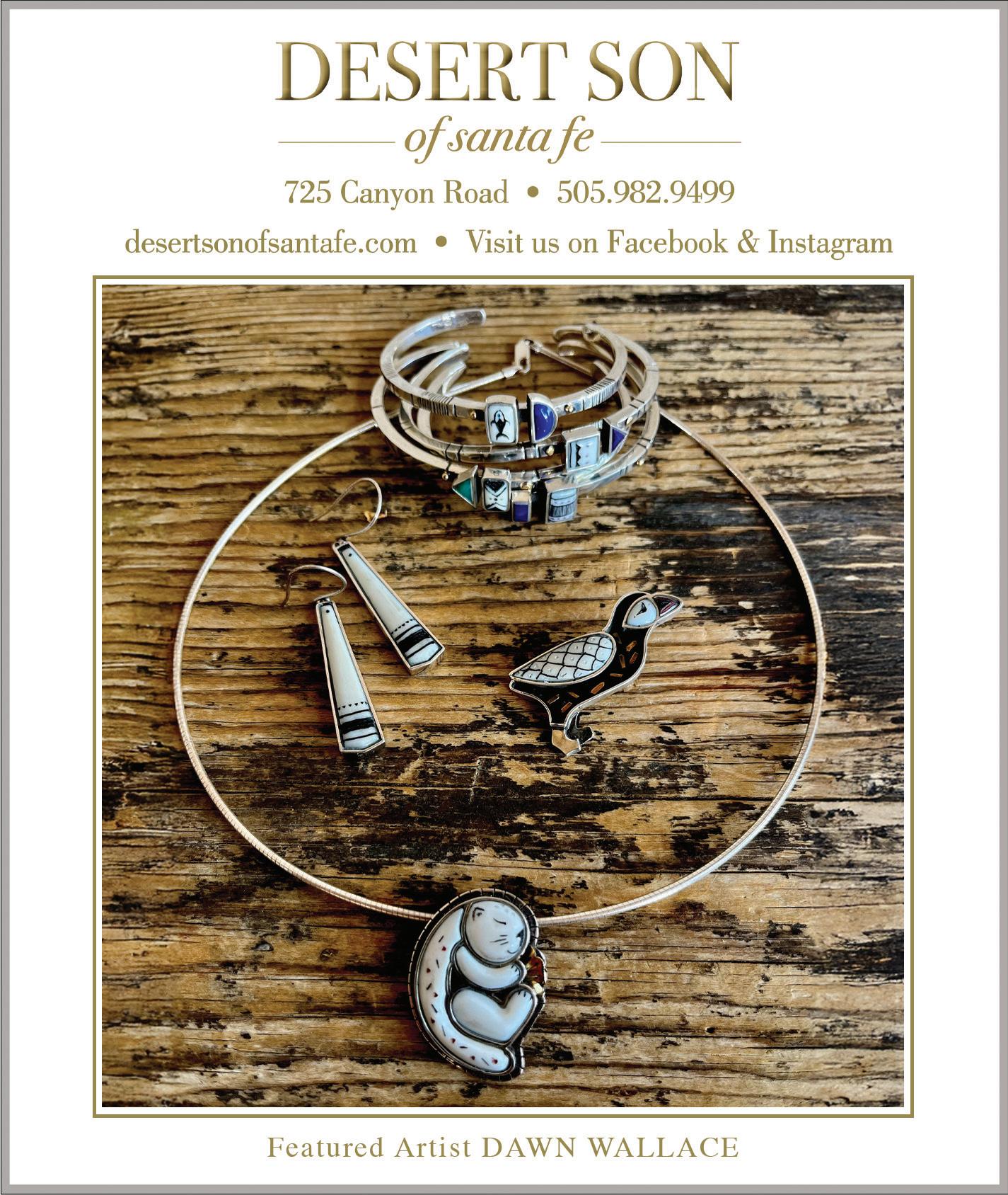 This oil painting on linen by Choctaw artist Karen Clarkson was a natural fit to represent both traditional Native values and modern innovations as our cover image. It’s a Good Day to Dance! vibrates with the joy of a Diné child dancing in traditional regalia “with all her heart while her mom looks on,” Clarkson says. The image speaks of both hope for the future and respect for the past, perfectly representing SWAIA’s slogan for this year — Iconic Beginnings: Legacies in Motion. The award-winning Clarkson says her art has always been “about selfdiscovery and developing a way of communicating to others.” Find her in booth LIN E 726 at the Santa Fe Indian Market and online at clarksonart.com.