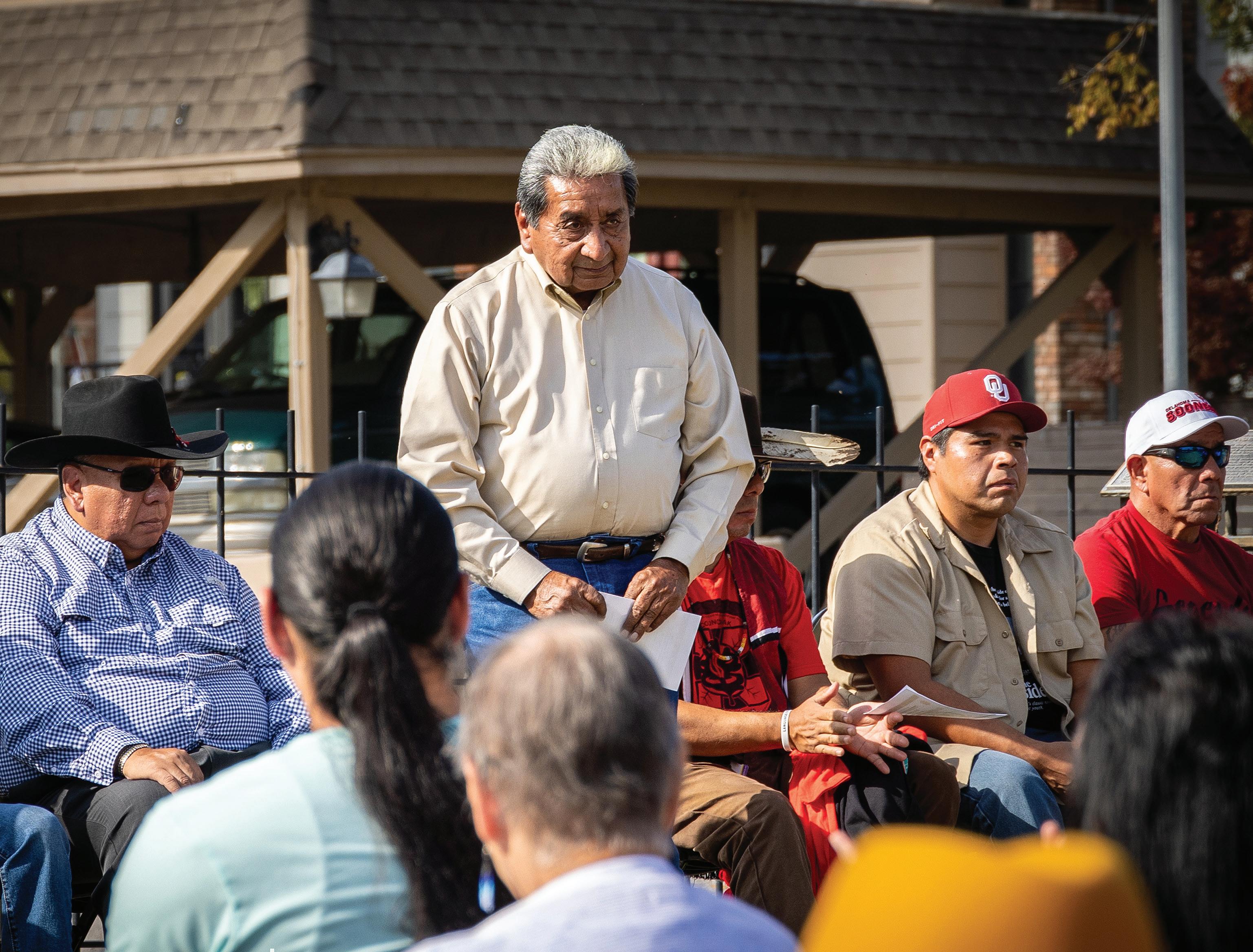 The Muscogee Creek Nation will host contemporary Mvskoke artists and storytellers Joy Harjo (three-time U.S. Poet Laureate) and filmmaker Sterlin Harjo (Rez Dogs, This May Be the Last Time), plus representatives from Oce Vpofv (Hickory Ground), to explore how Native artists and grassroots communities can share their stories about ceremonial grounds and demand justice in an effort to save the most sacred of sacred, especially as the government and courts fail to uphold laws like the Native American Graves Protection and Repatriation Act. Both Joy and Sterlin Harjo traveled to Atlanta, Georgia, last fall to participate in the Muscogee Creek Nation’s “Journey for Justice” to bring attention to the plight of the ceremonial grounds and burial sites at Oce Vpofv. (Read more about Hickory Ground on page 96.)