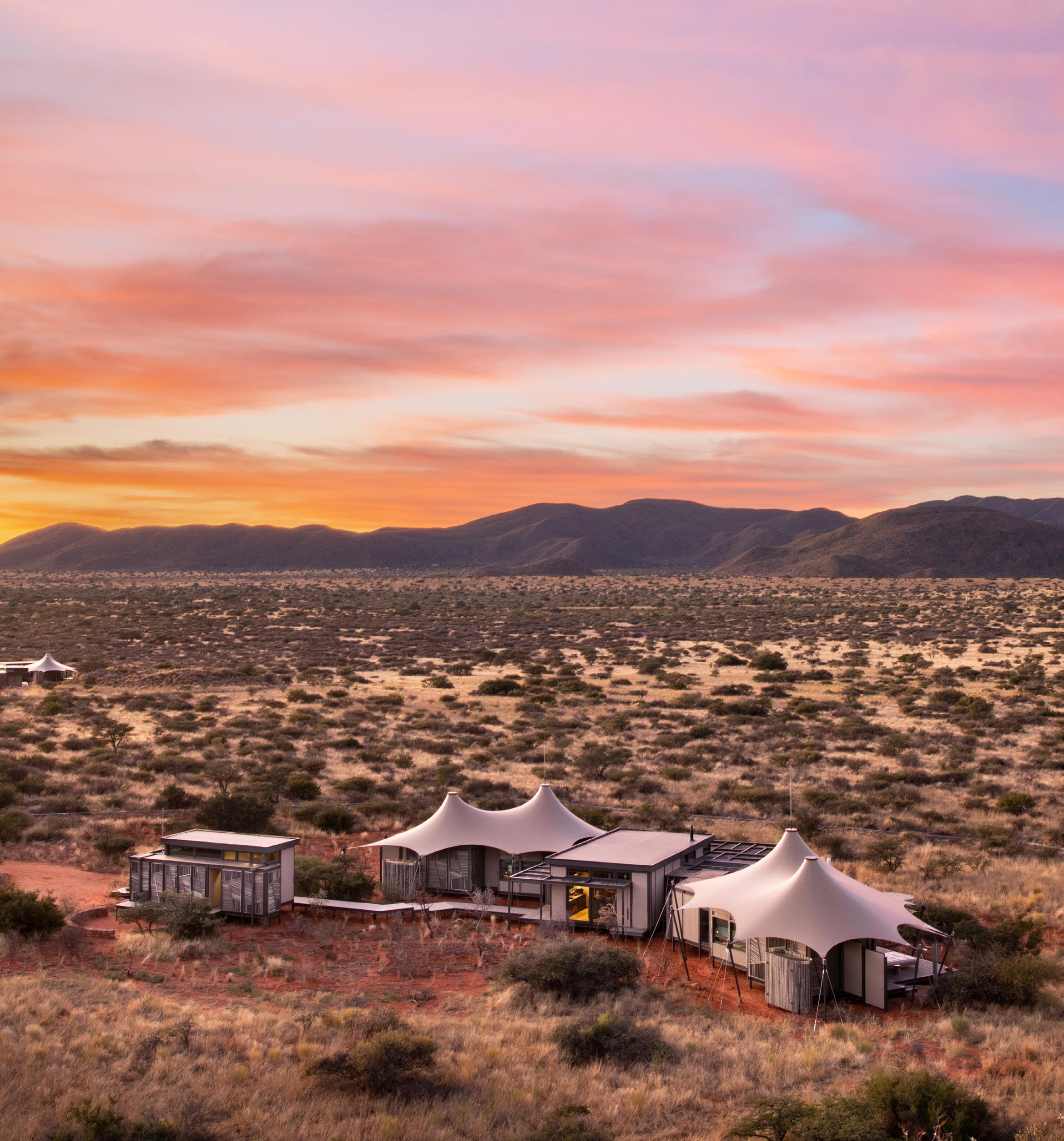 A favorite of the Swain Destinations Africa team, enjoy the expanse of the Tswalu Kalahari Reserve at Loapi Tented Camp. Sustainably designed and environmentally sensitive, each tented home is tucked into the contours of a valley between the Korannaberg mountains.