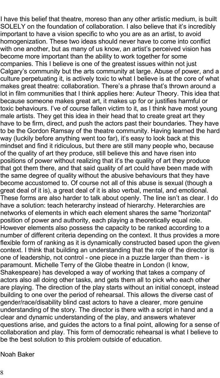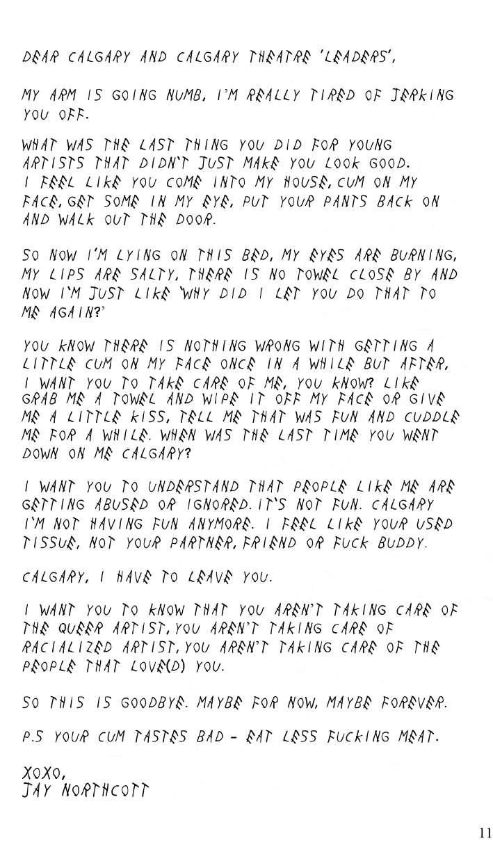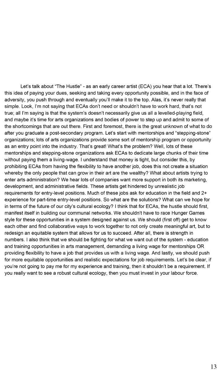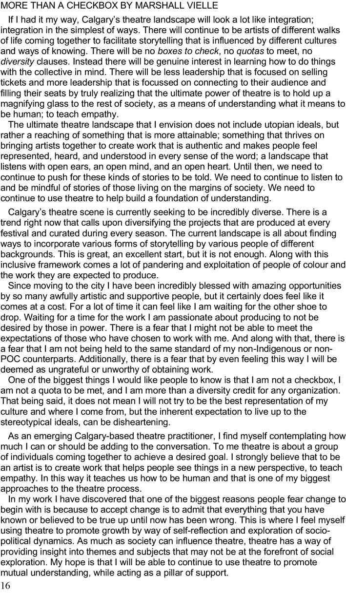 For this zine, I approached fourteen of those I consider to be the city’s most exciting young theatre artists (ages 25 and younger) and asked them to respond to one or several of the following: