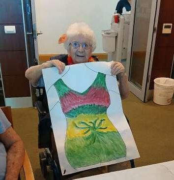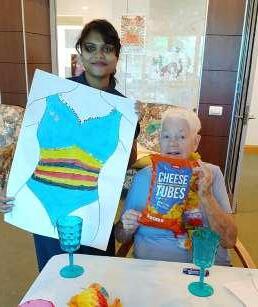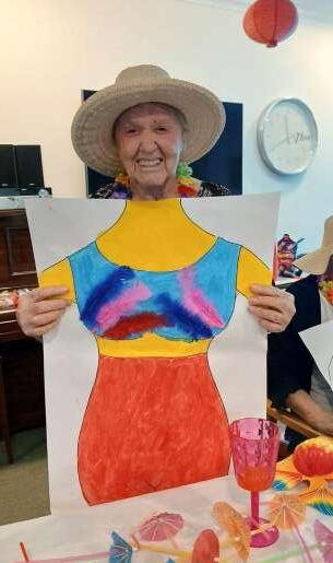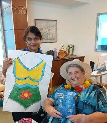 Over summer, residents embraced creativity with their own “Swimwear Competition.” Through arts and crafts, they designed and painted their dream swimwear. After allowing the artwork to dry, everyone gathered for a lively Luau party featuring a fun cup-stacking game. The event concluded with residents modelling their creations, followed by judging. Joan S and Barbara P were announced as the well-deserved winners.