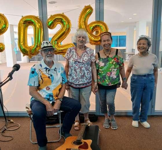 Ningana, Kingia and Tandara residents gathered for Carols by Candlelight with the Mackie St Singers, creating a warm and festive atmosphere. Ningana and Waminda residents embraced the spirit of the season with creative cookie-decorating sessions, while Waminda proudly showcased a special performance by The Sassy Waminda Choir, made up of residents themselves. A dazzling car light show added extra excitement one evening. Kingia and Tandara residents also enjoyed a free Christmas Day concert from Aurora and a New Year’s Eve performance from Derek. Santa Phil and family ensured every resident received a gift, complemented by treats to both staff and residents from Pamela L and her sister Elaine.