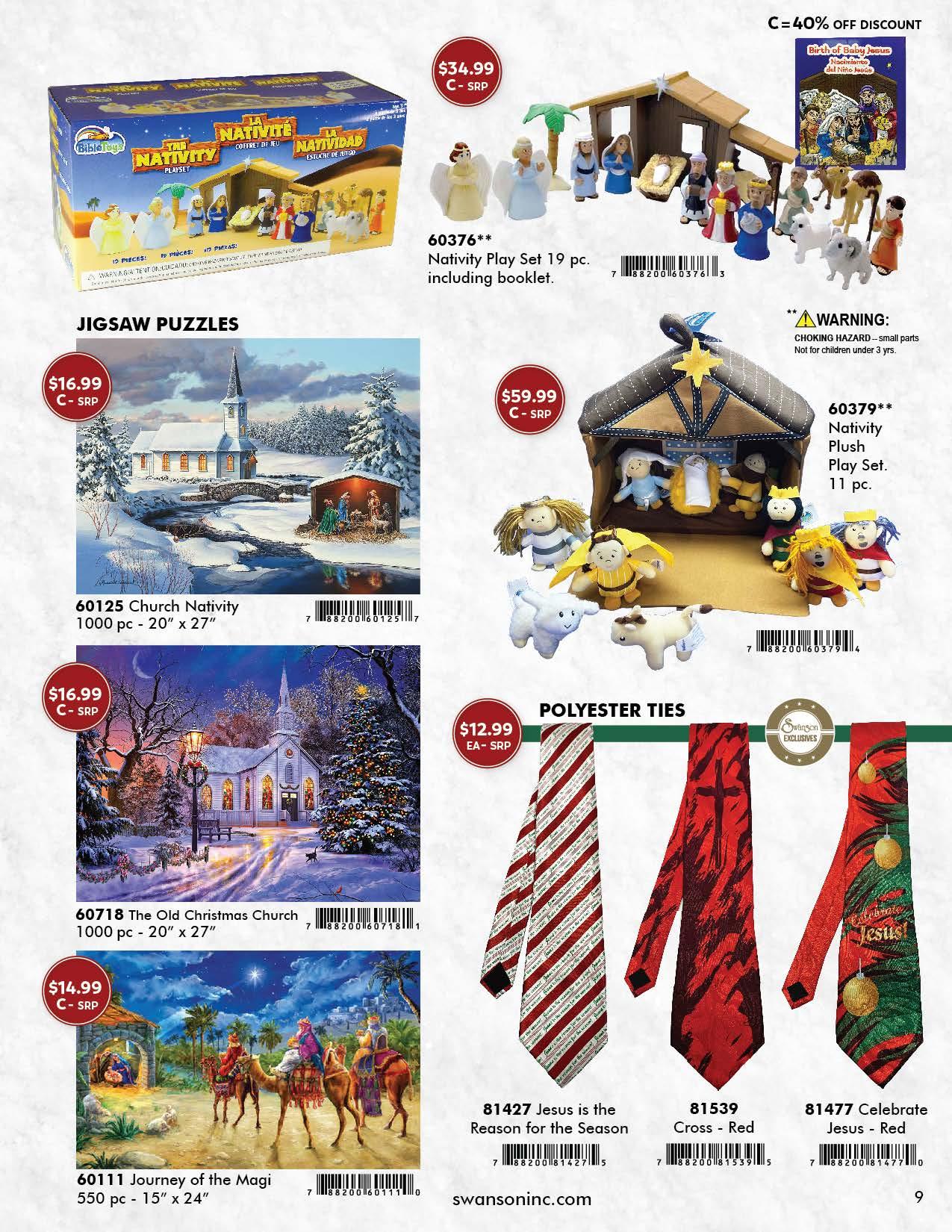 Christmas time is coming and it's time to deck your shelves with Gifts of Eternal Value! Inside, you'll see what's new along with your Christmas season favorites. Featured on the cover is the new Jireh mug that makes a wonderful gift reminding us He is enough. Next, you'll find Pechi™ Inspirational Agendas that offer many features such as devotionals, verses and phrases, and is available in English & Spanish versions. Also, check out the new wooden puzzle designs that are perfect for young ones to learn and build up their faith. Genesis 1:29 Essential Oils are available as a gift assortment, or can be purchased as individual scents. Lastly, we are excited to announce new Oil of Joy Anointing Oil displays--available filled with popular fragrance selections, as well as empty displays that you can fill with your favorite Oil of Joy top sellers. On the back cover, you'll find new gift sets of Oil of Joy Anointing Oil in 1 oz. bottles which come packaged in sturdy full-color boxes.
