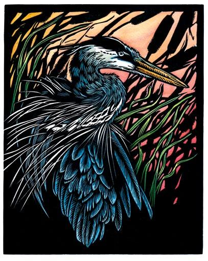 It is my hope that in addition to keeping a field journal, people who see my woodcuts will feel a bit of that stillness and awe within the image. For me, making a woodcut is a devotional practice. I observe, I listen, I draw, I listen, I carve, I listen, I print and I listen. I slow down and listen for the spirit of my subjects. And when I can hear them, my work has more ability to inspire people to work for what they believe in.