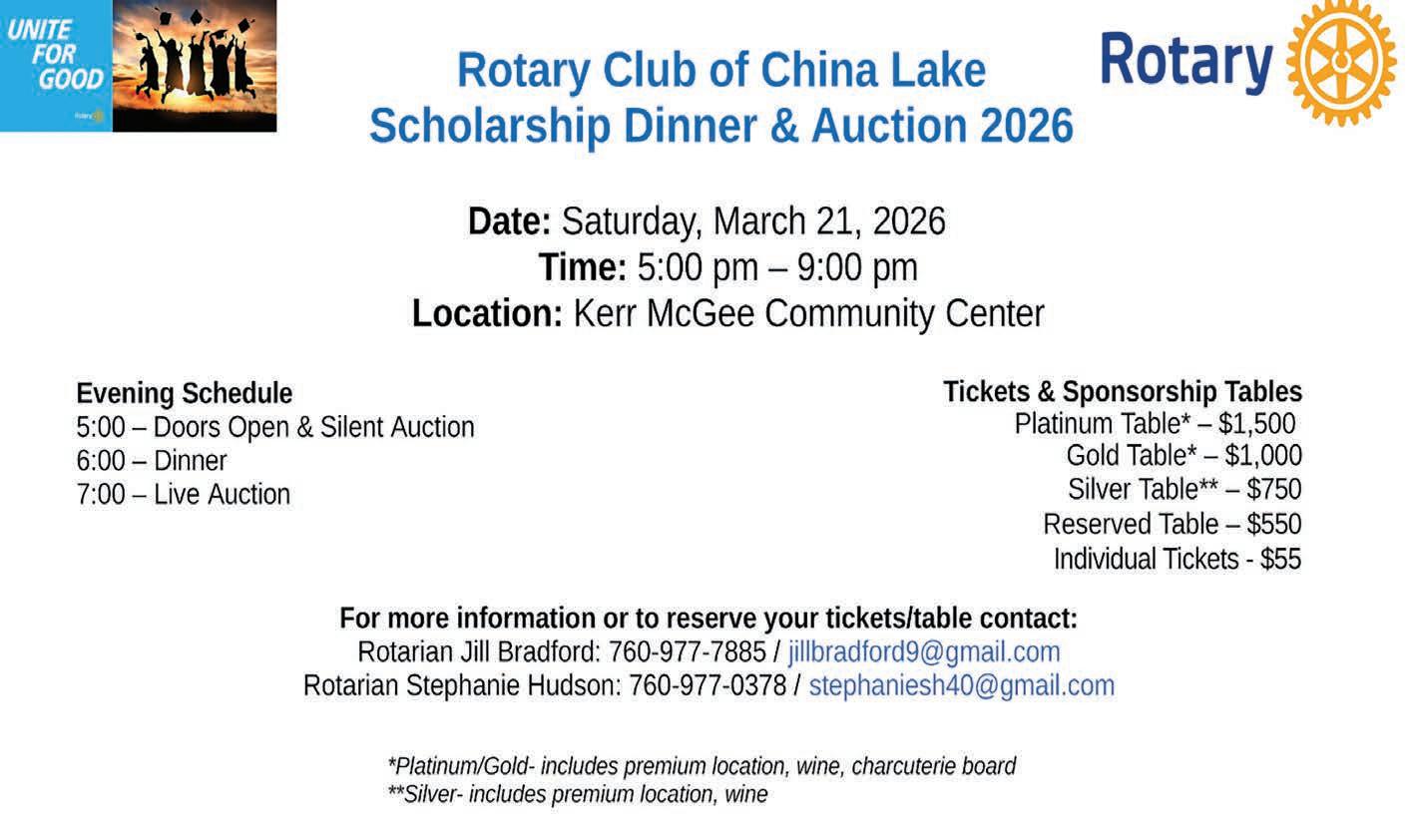 We will also reflect on the vital role of the military, including the Navy and the Air Force, and the crucial role Naval Air Weapons Station China Lake and Edwards Air Force Base have played and how they are positioned to bolster the nation’s strength in the future.