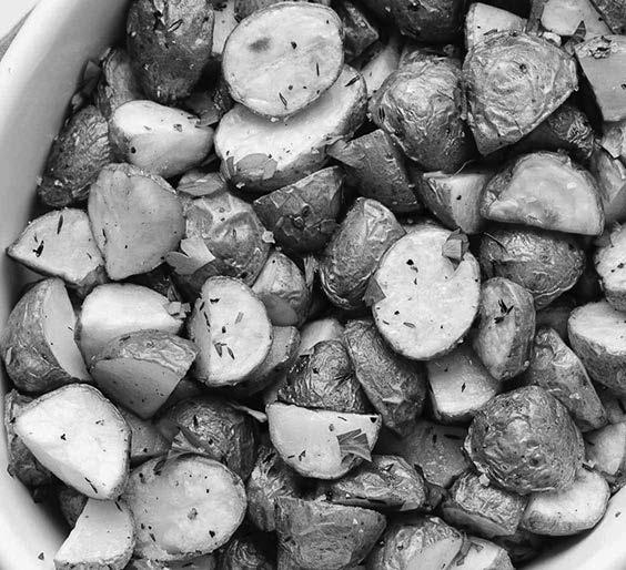 Preheat oven to 425°. Toss potatoes with oil and seasonings; spread in a 15x10x1-in. pan. Roast 25 minutes, stirring halfway. Drizzle with vinegar and bacon roast until potatoes are tender, 5-10 minutes.Top with chives and serve