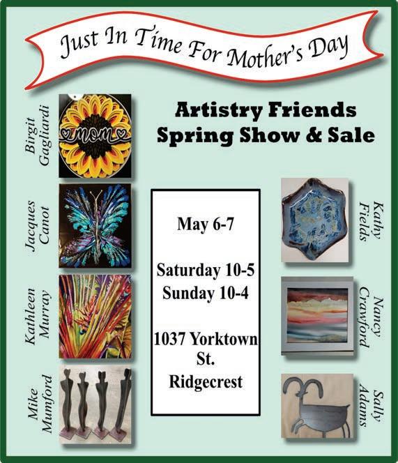 PAGe 03 THURSDAY, APRIL 20, 2023 THe SwAP SHeeT DeFeND YOUR HIDe... solar protective hats, gloves, sleeves. Todd’s Outdoor. 04/20 ** MOVING SALe DOwNSIZING! Roosters & Chickens collectibles, 2 chest of drawers, many kitchen items, too much to list. Friday, 9am to 2pm. 1413 N. Phillips Street. 04/20 CASH PAID FOR complete junk cars. Call for quote. 1-760-446-5559. TFN Storage 8x20 - $80 p/mo Storage 8x40 - $125 p/mo Most reasonable rates in town. Reasons why to store at RHB Storage: More space for less money Rates don’t jump around Yearly payment discount available 1-760-375-7727 667 S. Richmond Rd. Unit E., Ridgecrest A&L Tire Service Center and We’re More Than Just A Tire Store... We’re Your Complete Automotive Service Center! LET US GET YOUR VEHICLE IN TIP TOP SHAPE! Hablamos Español 317 West Inyokern Road • www.AandLTire.com (760) 499-MIKE 50% OFF “Mount and balance fees" special when buying 4 new tires Must mention this ad! Limited time only OPEN SATURDAYS! We have extraordinary quality tires and the best prices too! osreP , g,ng iraC ng s itneDdezila SCOTTE.WHITING n !syadi !yrt STRY RY TENING a DentalPPO. ,DDS G,DDS r 841NDOWNSSTS A T CHILDREN’SDENTIS DENTAALEMER NITROUS/LAUGHI ORALSEDATTION•ROO WeAreinNetworkwithMostInsurances Fr xelFnepOer’ e We W SUITEC TRY•COSMETICDENTI RGENCIES•IMPLANTS NGGAS•ORALSURGE OTCANALS•TEETHWHI ,IncludingAllBaseDentalPlansandDelt ROBERTJ.WHITIN F T 841N. DOWNSST.., 760-375-6999 Email:wfdridgecrest@yahoo.com•www.whitingfamilydental.com 117 E. Ridgecrest Blvd. Ridgecrest, CA 93555 760-463-1297 • Great Food designed for the family! • Priced right • Food specials! Watch the sports games and enjoy the food and drinks! 1500 McLean St, Ridgecrest, CA 93555 760.446.3010 • Fax 760.446.5180 Email: packwrap@hotmail.com We Can Help! Looking for Construction Drawings? Now Open Mon.-Fri. • 9 am - 5 pm Oversize Scanning Copies Printing Faxing Shipping Scan To Disk/Email Oversized Prints Banners Posters And More Plans Up To 42” Wide Color & Black & White Quick Turnaround Time