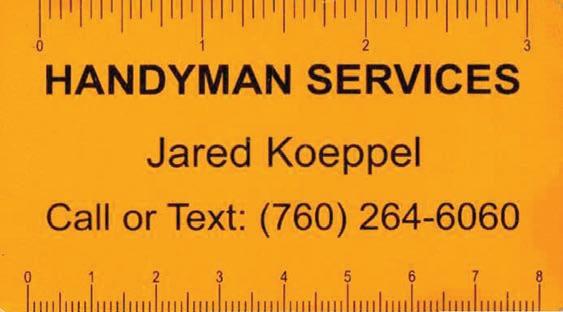 TFN RIDGeCReST GUN RANGe is open. RGRA 600 yard outdoor shooting range. CCW Classes. Membership $25. www.RGRA.org. 1-760375-1004. Guns4Us. 08/03 061028 f .qs0801x8 LY HTNOMWOL L T NERRO S F T SnO dna 08$f om04$.t A TA NERY T t soCWOLTG AROT S ograCeti eruceS efa UegarotS L UAVE sti T n f .qs02304x8 .qs 06102 x8 n S-n om021$.t 08$ f C O !sreniat ograCet n rekoynI1564 4 4-773-067 n eRroflla i .dR slat s ercegdiR t Handyman Services No Job Too Small! LN:225011 Call Bill 760-264-3515 Evaporative Coolers Dump Runs 40 Years Experience! PRIC PLACE YOUR Y YAARD SALES WITH U Your ad will be place ourYardSaleMapon ONE LOW US! d on nline org Issue! et te C CE! our Yard Sale Map on at www.swapsheet.o As well as in our Print Issue & our Online I *Deadline: Every Tuesday at 5:00p.m. The Swap Shee 7603755400 Ridgecr W 619 W. . reest Blvd. Suit swap@swapsheet.orrg g