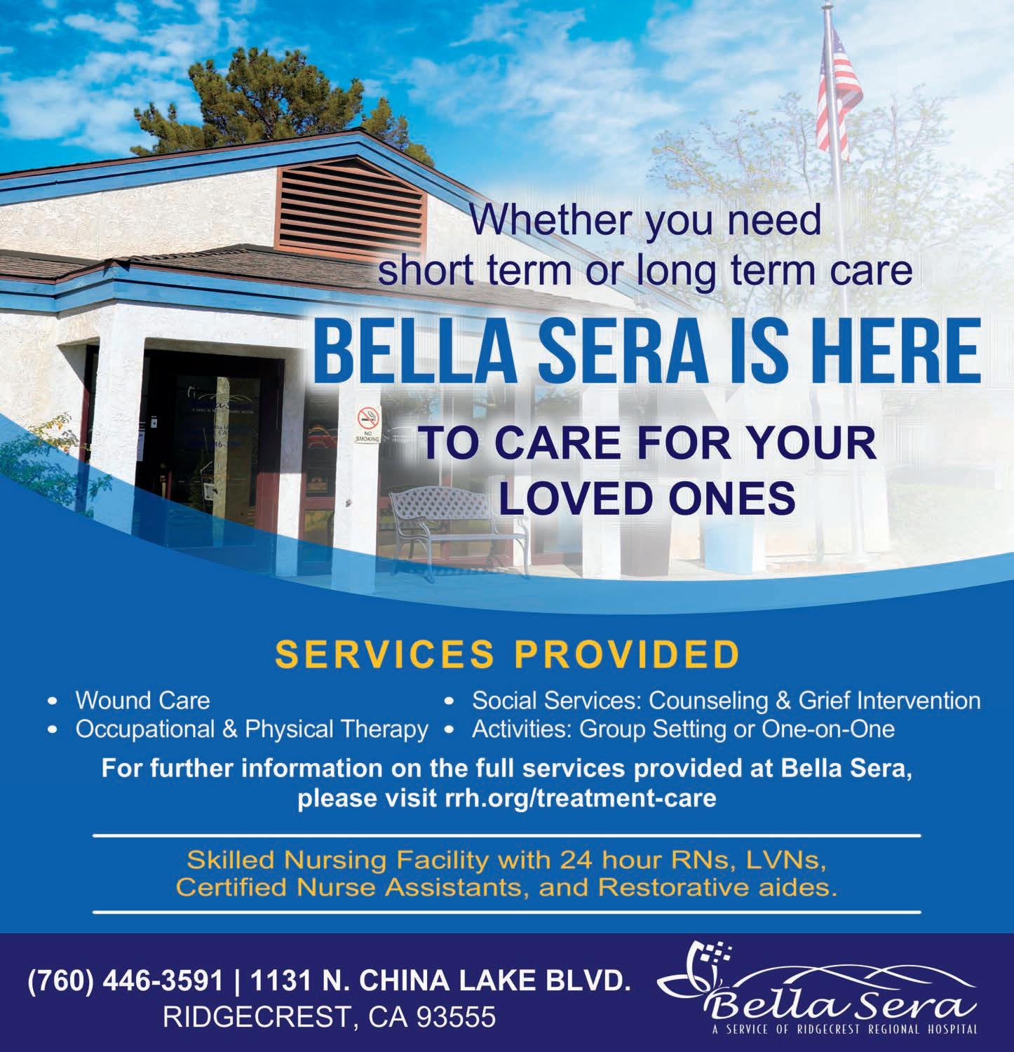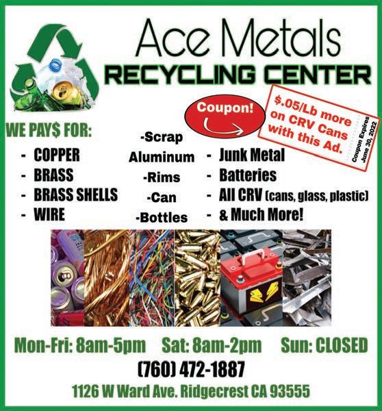 STAFFORD’S Pest Control OUR EXTRAS NEW SERVICE START UP SPECIAL CALL US! ...that is what makes our services extraordinary! Inside and Outside Service Monthly or Bimonthly 721 N. China Lake Blvd. • 760-375-7575 staffordpest@gmail.com Se Habla Español • Disinfection Service • Bed Bug Heat Treatment • Bio-Remediation Drain Service • Weed Abatement • Rodent Exclusion • Bird Exclusion • Gopher Trapping • Snake Repellant • Rabbit Repellant • Tree Treatments Borers/Termites • Drought Treatment (Great for Lawns) • Termite Inspections and Solutions MON REVE French Country Cuisine Dine in following CDC precautions! Delivery or to go available! AIR CONDITIONING, Inc. Lic. # 680890 1610 N. Inyo St. Ridgecrest, CA 93555 Heating • Sheet Metal Senior Discount Phone: (760) 446-6000 Fax: (760) 446-0907 Serving the Valley Over 40 Years! • Service & Installation • Day & Night • Cooler Start Up / Shut Down • Mini Splits • Aerocool Trophy & Pro Series • Free bids on installations • Competitive Prices, Quality Work • Emergency Service Available Garages, RV Covers, Carports, Stables, Hay Barns, Etc. 1-760-377-4860 FREE INSTALLATION See Models At 4521 Inyokern Rd. Mon. - Fri. 10am - 5pm