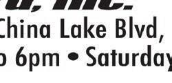 (760) 384-1948 We offer all our delicious foods to go too! Monday closed Tues., Wed., Thurs. 11am - 2pm and 5 - 9pm Fri. 11am - 2pm and 5 - 9:30pm Sat. 12-9:30pm. Sun. 12 - 9:00pm FREE ESTIMATES CA License #1026495 Licensed Bonded and Insured • Kitchen / Bath Remodels • Home Repairs / Handyman Services • Residential / Commercial Property Maintenance • Design Services • Windows / Doors • Flooring • Mold Remediation • Countertop Fabrication / Install 15%Discount Military, DOD & Seniors 257 Balsam Street, Ridgecrest 760-977-3018 866-884-3349 FAX www.thefixrc.com “Building The Future, Restoring The Past”