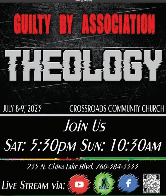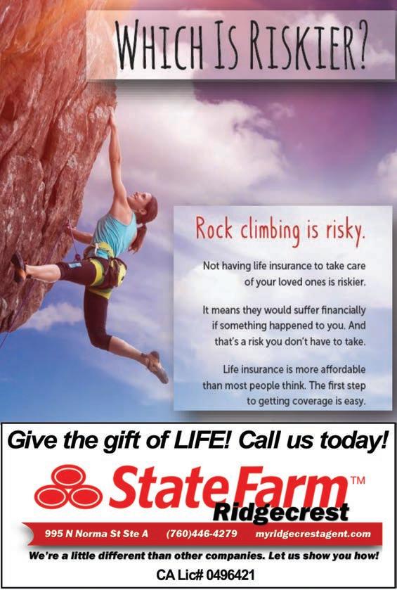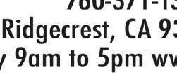 PAGE 03 THURSDAY, JULY 06, 2023 THE SWAP SHEET CCW- NEW AND refresher certifications. Private on request. www.CCWOB.com. Professional first. QUEEN SIZE TEMPUR-PEDIC adjustable bed with massages for head, lumber & leg. Excellent condition. 1760-677-1973. 07/06 PLEASE CHECK YOUR ads, if there is an error, we are responsible for the first insertion only. Storage 8x20 - $80 p/mo Storage 8x40 - $125 p/mo Most reasonable rates in town. Reasons why to store at RHB Storage: More space for less money Rates don’t jump around Yearly payment discount available 1-760-375-7727 667 S. Richmond Rd. Unit E., Ridgecrest A&L Tire Service Center and We’re More Than Just A Tire Store... We’re Your Complete Automotive Service Center! • FREE Shuttle Service For Customers Convenience • 24 Hour Roadside Tire Service For Any Vehicle • FREE Vehicle Safety Inspections • Full A/C Service • Napa Care Center • We Offer The Best Nationwide Road Hazard Warranty In Town • Newest State Of The Art Tire Pressure Monitor System Diagnosis With Some Of The Most Affordable Sensors In Town • Only Shop In Town That Has A Wide Variety Of American Made Tires In Stock Hablamos Español 317 West Inyokern Road • www.AandLTire.com (760) 499-MIKE OPEN SATURDAYS! A/C SYSTEM INSPECTION $69 most vehicles LOOK RO S Car Flex Fr e re We W OBERTJWHITING COTT E. WHITING, D ing, Personalized Dent e’r ridays! NG ON GAS DDS DS ental PPO. ces, ITE C istry! GENCIES Open ROOT CANALS • TEETH WHITENI SEDATI • ORAL SURGERY ORAL NITROUS/LAUGHING IMPLANTS • EMER TAAL Y COSMETIC DENTISTR Y CHILDREN’S DENTISTR ROBERT J. WHITING, Delta D All Base Dental Plans and Including Are in Network with Most Insuran We 760-375-6999 . • SUI T. 841 N. DOWNS ST • DENT .whitingfamily Email: wfdridgecrest@yahoo.com • www dental.com 117 E. Ridgecrest Blvd. Ridgecrest, CA 93555 760-463-1297 • Great Food designed for the family! • Priced right • Food specials! Watch the sports games and enjoy the food and drinks! 1500 McLean St, Ridgecrest, CA 93555 760.446.3010 • Fax 760.446.5180 Email: packwrap@hotmail.com We Can Help!
