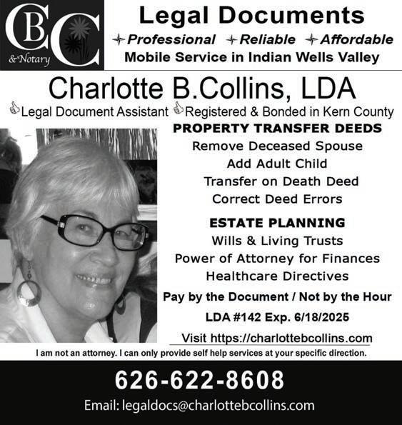 *Limited to 20 words. In person or by phone. The Swap Sheet, 619 W. Ridgecrest Blvd. Suite C. 760-375-5400. 08/31