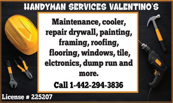 we DO ROOFING. A&R Roofing LLC. Lic# 1090884 C39. 751 S. Richmond Road, Suite G. arconstructionrc.com. 1760-301-7026. TFN we pAINT HOUSeS . A&R Construction. Lic# 1024779. 751 S. Richmond Road, Suite G. arconstructionrc.com. 1-760301-7026. TFN CARe GIVeR 25 years. Love to help. 1-760-495-2377. Leave a message I will call you back. 08/07