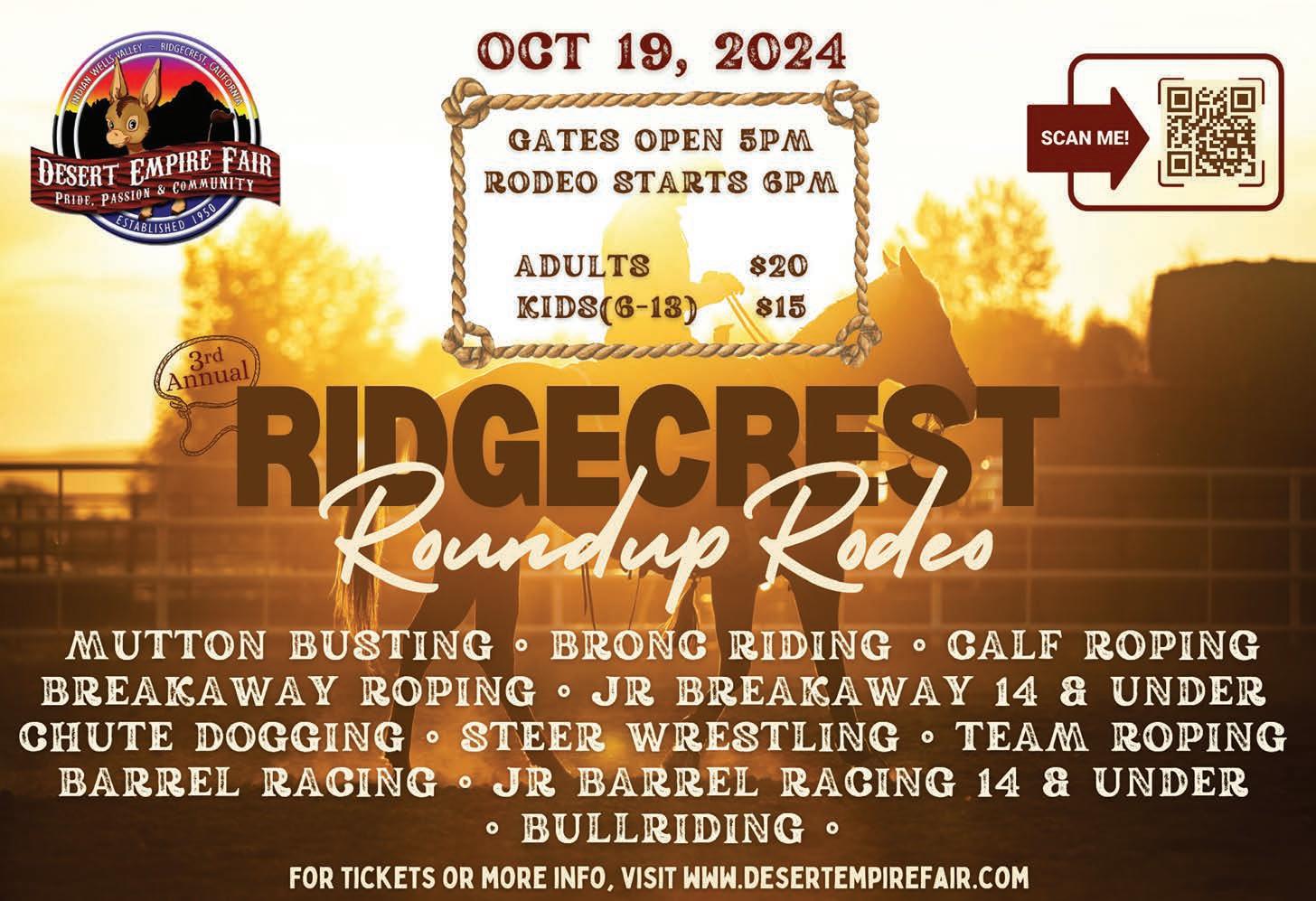 THE FRIENDS OF the Ridgecrest Branch Library, a 501(C)(3) non-profit that raises money to support your local Library, needs a space in which to store, sort, and sell donated books. Ideally, this space would have a minimum of 1,000 square feet, a bathroom, and be donated to maximize the benefit to the Library. However, if necessary, we are willing to pay for utilities and minimal rent. If you own, or are aware of a candidate space, please contact the Friend’s President, Jerry Bradley at 1-760-608-3452 or ridgecrestlibraryfriends@gmail.co m. 10/24