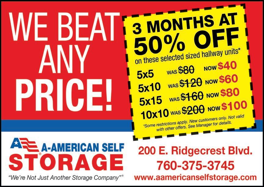 cial order anything we don’t have on the shelf! 206 W. Ridgecrest Blvd. Mon-Sat 10am to 6pm, Sun 11am to 5pm, 1760-375-3454. 10/31