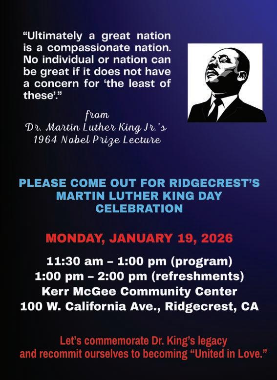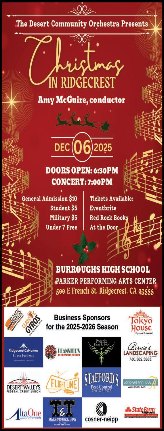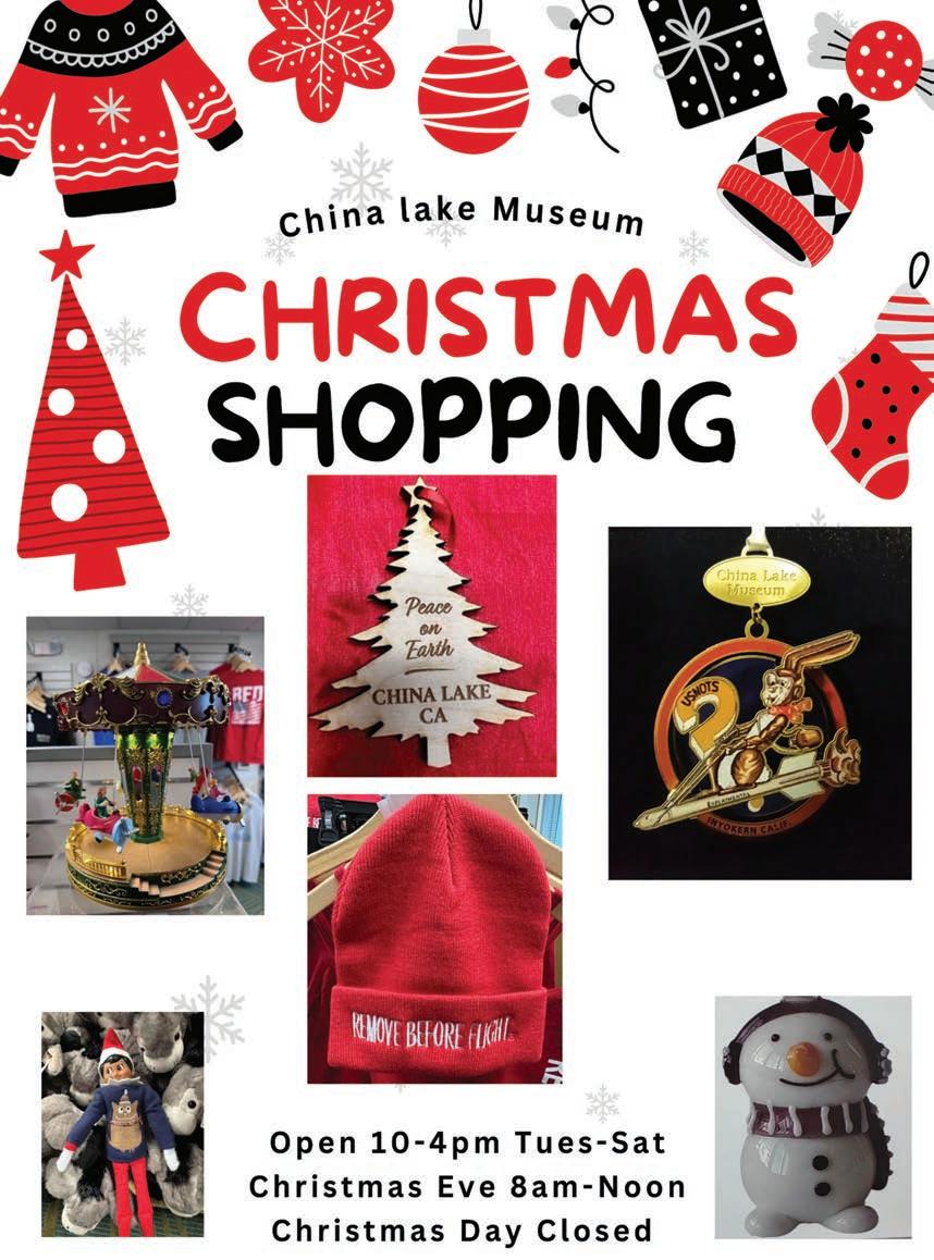 LOOKING FOR UNIQUE Christmas gifts? Check out the locally crafted wood items at Aubrey’s Art. 221 E Benson Ave. Ridgecrest, Dec. 6th 9am-3pm. All proceeds to benefit Maturango Museum. Donations only, tax included. 760-375-1520. 12/04