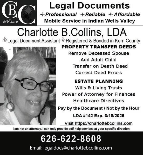 RED ROCK BOOKS has the 2025 World Almanac and Book of Facts and the 2025 Farmer’s Almanac! 206 W. Ridgecrest Blvd. Mon-Sat 10am to 6pm, Sun 11am to 5pm. 1760-375-3454. 12/05