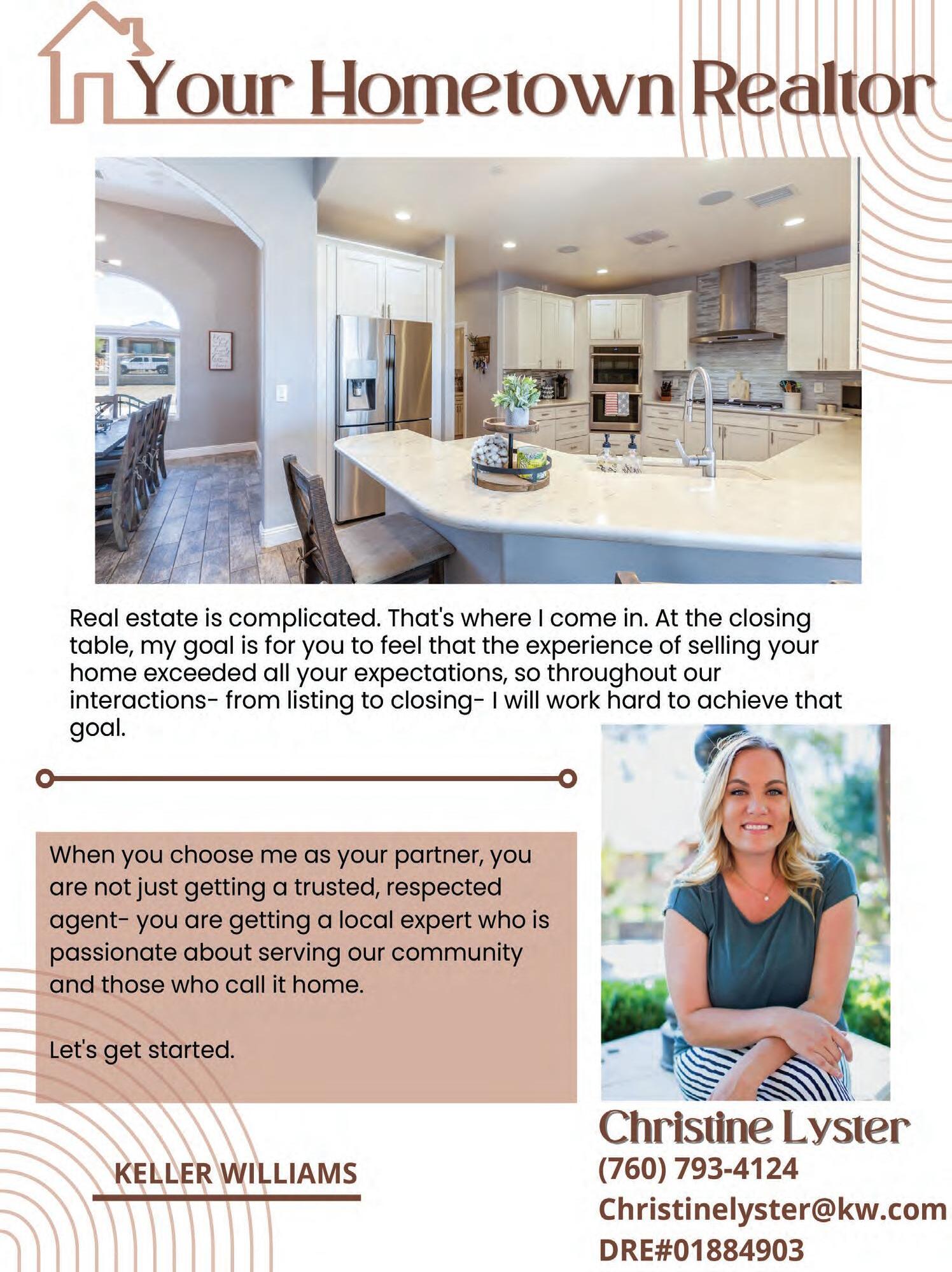 PAGE 29 2023 - 2024 VAUGHN REALTY 509 W. Ward Avenue Ridgecrest, CA 93555 760-446-6561 DRE#00742584 Serving the Valley Since 1975 See All Homes @ vaughnrealty.com