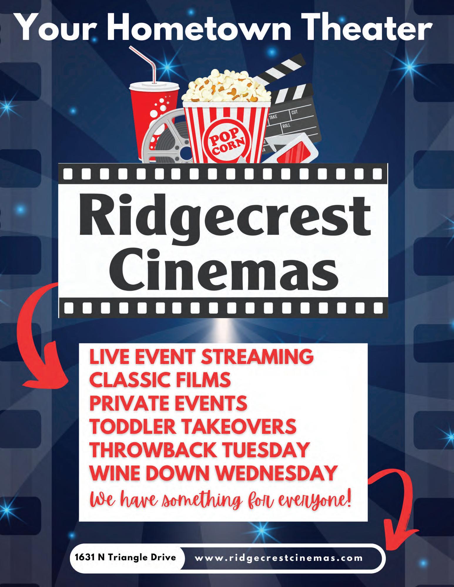PAGE 7 2023 - 2024 G s Spportts o Yo Y S rt iq u t rt q daeH t ift f r e erss! r t ft ydnaC f f Oc ! i o a sno sac Inside! endors 10 Have We V shtaer n rekoynI•.daoRnrekoynI.N3556 m .p00:6oT00:21:yadnuS-yadsruhT W . Saturdays from 8am - Noon Ridgecrest Cinemas 1631 N. Triangle Drive