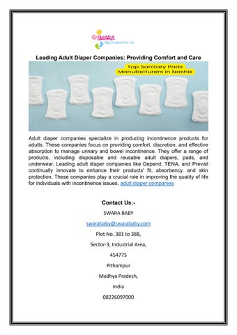 Leading hygiene products manufacturer of India. We create Baby Diaper, Adult Diapers, Sanitary Napkin, Panty Liners, Period Panty & Baby Wipes.