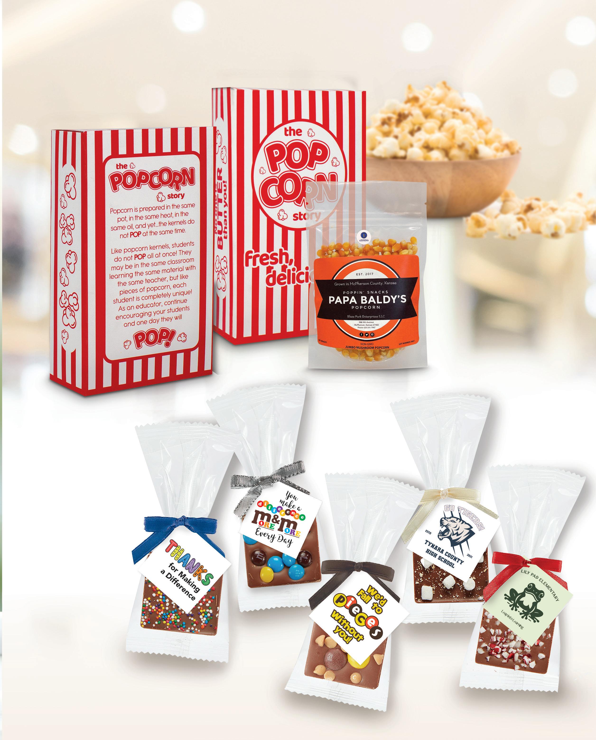 Share this gift of popcorn and the motivational story behind it with your teachers and staff. Includes a classic popcorn box with the motivational message on the back and a 4 oz. bag of non-GMO popcorn kernels that have been grown and harvested in Kansas!