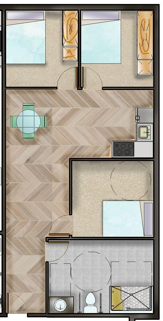 When occupants enter this space, they will be embraced with a feeling of warmth, comfort, safety, and healing. To achieve this, I plan to create an even and flowing journey through the space using clever lighting, curved patterns, and finishes. The curved designs will allow people to move seamlessly through the space, while the patterns provide a sense of ease and tranquility, resulting in a calming journey. Additionally, a sophisticated color palette with accent colors will be used to define bold design statements, inspired by the architectural features and color palette of Antigua, making this new space familiar and comfortable for refugees.