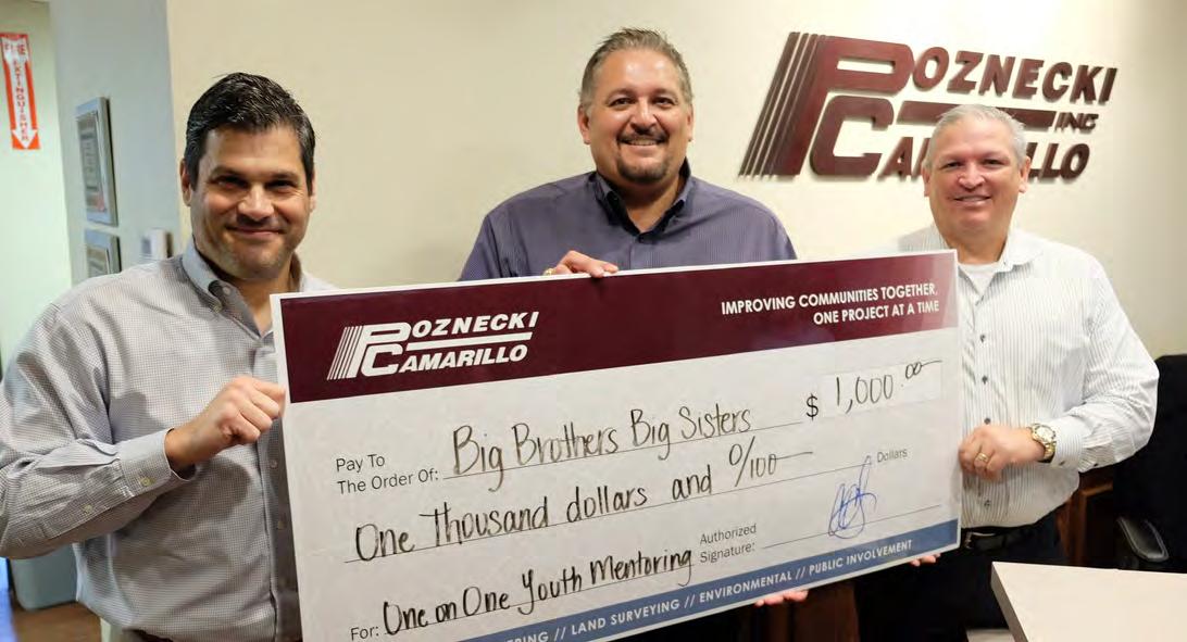On January 18th, PCI made a donation to Big Brothers Big Sisters for One-on-One Youth Mentoring. Pictured left to right, Hugh Farr, Beto Jr., and Fernando.