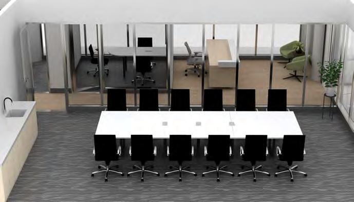 In addition to the open working spaces, this office will come with a larger break room, more storage space, a glass-panelled, modern conference room, and an on-site café.