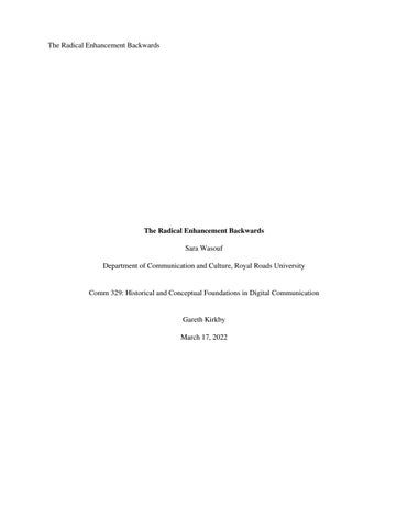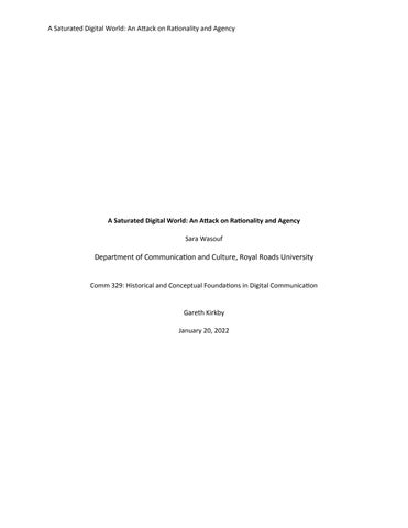 Emma Rossum Sara Wasouf COMM 392 Royal Roads University Susan Tinker March 6, 2022