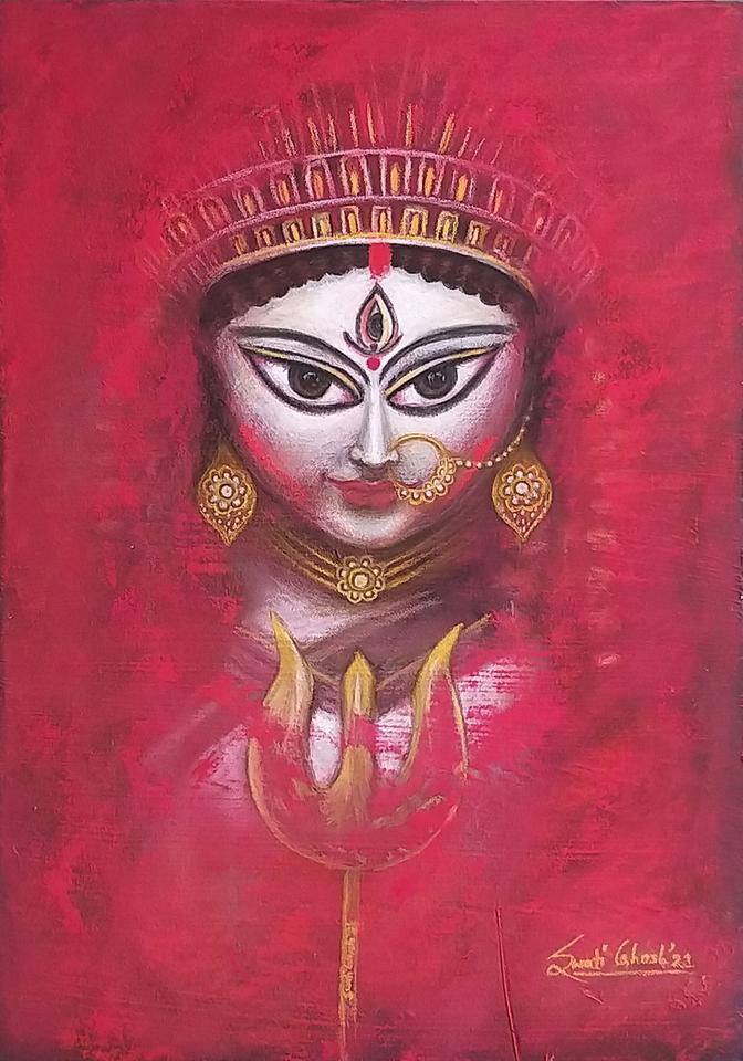 Ghosh'.The artworks show the cognizance of her grasp of fine arts. The wholeness, harmony, and radiance in her beautiful artworks appear to be realistic and lively.