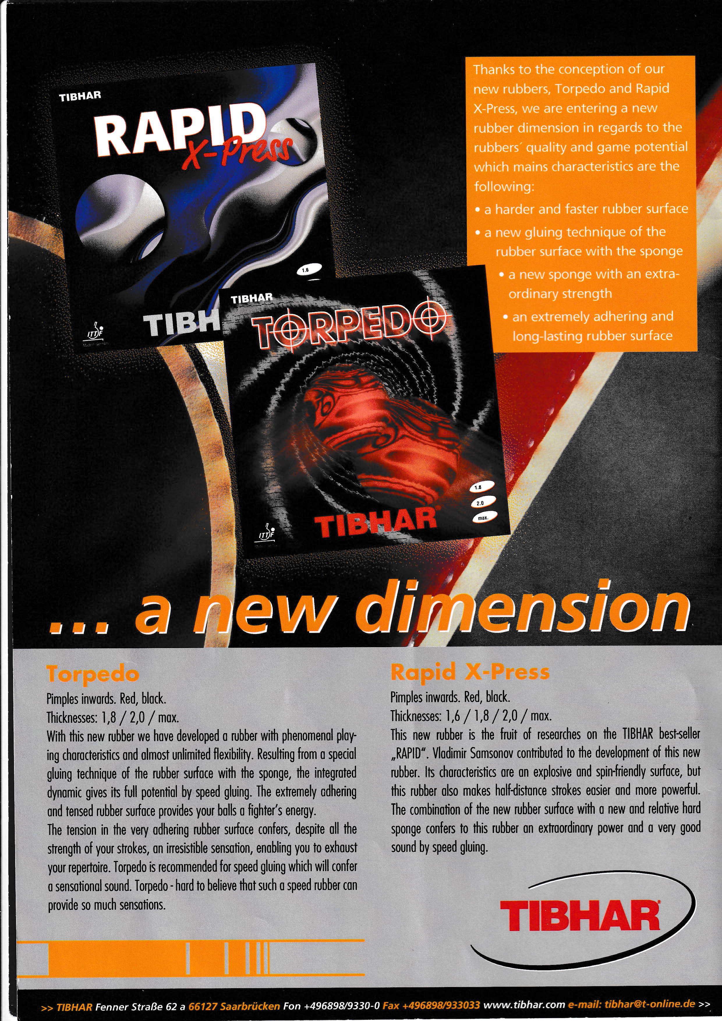 \ltliü lhis new rubkr we hove developed o rubber wiltr phenomenol plop ing chcroderisfics rd clmost unlimiled flexibility. Resulfing from o speciol gluing technique of the rubber surfoce wittr the sponge, llre integroted dy-ncmic gives ih full potenfiol by speed gluing. The extremely odhefing ond tensed rubber surfoce provides yow bolls o fighl«'s energy. The lension in the vay odheilng rubber surfoce colfers, despite oll fie streng* of your strokes, on inesisüble sensolion, embling you lo exhcust your repeiloire. Iorpedo is tecommended for speed gluing which will confer I sersolionol sound. Iorpedo'iord to believe lhot such o speed rubber con provide so much sensolions.