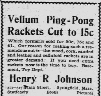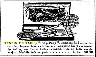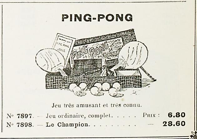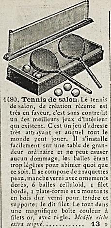 Table tennis fell out of the Au Bon Marché catalog for a long period, probably from about 1907 to 1922.