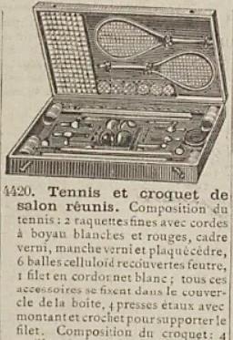 Or so we thought. So it was shocking like spotting a dodo bird when we found major French retailers still selling sets with strung or vellum rackets well into the 1920s, while giving at best secondary nods to the wood rackets that the rest of the world was using.