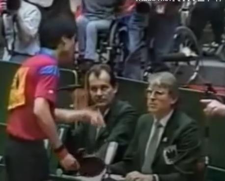 “But no. Ken had played hard-hitting offense through the first four games, and now he hit even harder. He didn’t want long rallies, but there were some anyway. Adoni would chop back everything, but then Ken would find a way to win the point. He just couldn’t miss. Somehow his lead went from 4-1 to 15-1. Adoni looked at the score and said to me, ‘Don’t I have more points than that?’ I shook my head, ‘No.’ The final score was 21-11. I think everyone, including Adoni, was glad the match didn’t end because of an injury.