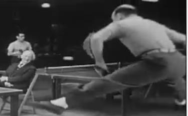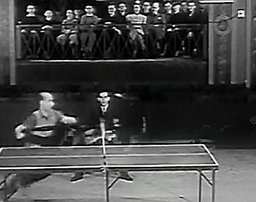 The table tennis show played up the comedy angle. While the crowds were highly impressed by serious play, especially the returns from 30 feet, they clearly enjoyed the myriad of tricks that became standard, such as hitting the ball with different implements or parts of the body. Usually one player would be the trickster/comedian and the other the straight man. The players were sometimes known as the “Globetrotters of Table Tennis.”