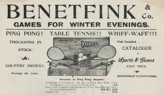 Issues 59/60 ***Our colleague Jorge Arango of Colombia provides 1901 evidence that he believes pinpoints when the English firms Jaques and Hamley became jointly concerned in Ping Pong. Our colleague Michael Thomson of Scotland added further evidence in Issue 101.