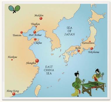 Issue 58 ***Page 6. I have not been to China, so I was grateful a few years ago to learn of our colleague Graham Trimming’s posting of 199 photos he took at the museum complex there, Table Tennis Museums Shanghai September 2019 | Flickr. Looking through them, I suddenly saw an exhibit (left) that looked very familiar. The museum took the images directly from my TT Collector article “When Ping Pong Came to Asia.” They also used some of my text description. Graphic artist Remya Warrier had helped create not just the map but the look of the whole article (and it shows!), as well as Part 2 in the next issue. It was quite a surprise to see this exhibit, since our contribution, our existence, was never acknowledged. (Remya also helped design the cover of Ping Pong Fever: The Madness That Swept 1902 America Speaking of which, the museum shop would do well to add the book to its shelves.)