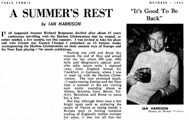 Summer 1965 Ian Harrison, 26, multiple-times English champion, partners with Gerard Chergui, the 1963 French champion, for the Globetrotters’ European and Near East tour.