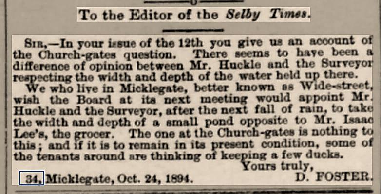See other Foster bio additions in TTC Issues 70, 77 and 97. Here is one new note: Foster’s work life included a close association with Procter & Co., merchants and cheese factors of Selby and Hull, and with its owners, the Winders family.