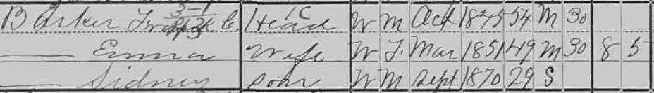 One oddity: Emma Barker died at age 54 in 1902. Yet her age was given as 49 in the June 1900 census, with her birth year changed from 1848 to 1851. Vanity, one supposes. Her gravestone does not show a date or year of birth (TTC Issue 65), but Frank’s does (Issue 69).
