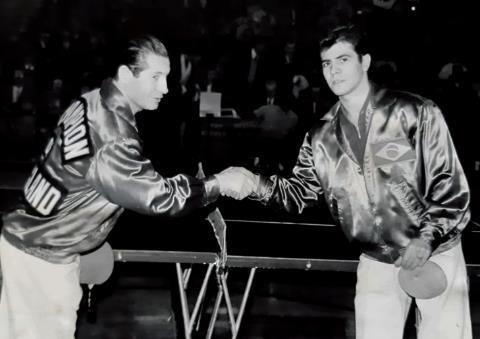 1963-64 Bergmann’s new partner is Brazilian sensation Ubiraci da Costa, 18, a penhold attacker known as Biriba. This photo is among many in a Swaythling magazine article about him, October 2021, page 26: Biriba
