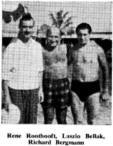 Summer 1956 Bergmann and Roothooft (right) tour with the Globetrotters in Latin America. At left, they visit with Laszlo Bellak, who was vacationing in Cuba.