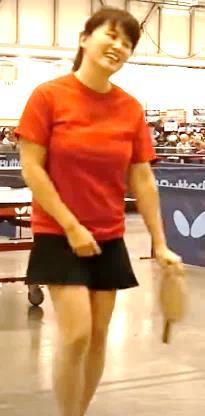 Ty was obviously confident. But in the second game, Jane became more consistent her game was close-to-the-table blocks and medium-speed hits while Ty’s forehand kills became less consistent. She is seen at right immediately after pulling out a 2119 win to tie the match. The swing in confidence continued to go Jane’s way in Game 3, which she won 21-12 to become the first U.S. sandpaper champ. Jay Turberville, one of the entrants, videotaped this and other matches search YouTube for Sandpaper 2010.
