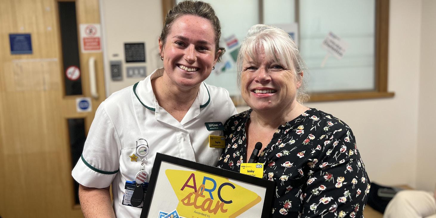 I am delighted to be judging and presenting the ARC Star awards. ARC is the new employee recognition scheme, which replaced Star of the Week. I was honoured to hand over the recent awards to Sophie Whiles and Crystal Campbell, both very worthy winners. The ARC Star is presented to someone who consistently lives our Trust values of Ambition, Respect, and Compassion, someone who goes above and beyond to make a difference to both their colleagues and patients. They display our values and behaviours in everything they do.