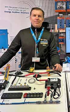 PER HEDENBECK, ODELCO – Odelco är distributör åt Hjertmans-gruppen. Vi arbetar med säkerhet, övervakning och kontroll, främst inom NMEA-system, litiumsystem och litiumbatterier. Kort sagt, vi levererar allt inom el och övervakning för båtar, husbilar och även off-grid-lösningar. – I år har vi ett nyhetsupplägg där vi presenterar de senaste nyheterna från Victron och säkerhetsprodukter från Ocean Signal. Vi lyfter också fram nyheter från Maretron och Digital Switching. Det blir en kort genomgång med bullet points över det mest intressanta, men de som vill kan självklart fördjupa sig mer efteråt. – Inom säkerhet har vi en nyhet som heter MOB2, en säkerhetsenhet som monteras i flytvästen. Den kommer från Ocean Signal och är en spännande produkt. När det gäller Victron pratar vi om deras nya gränssnitt i skärmarna och i VRM-portalen samt deras Connect-appar. Men den största nyheten vi visar är Victrons Next Generation