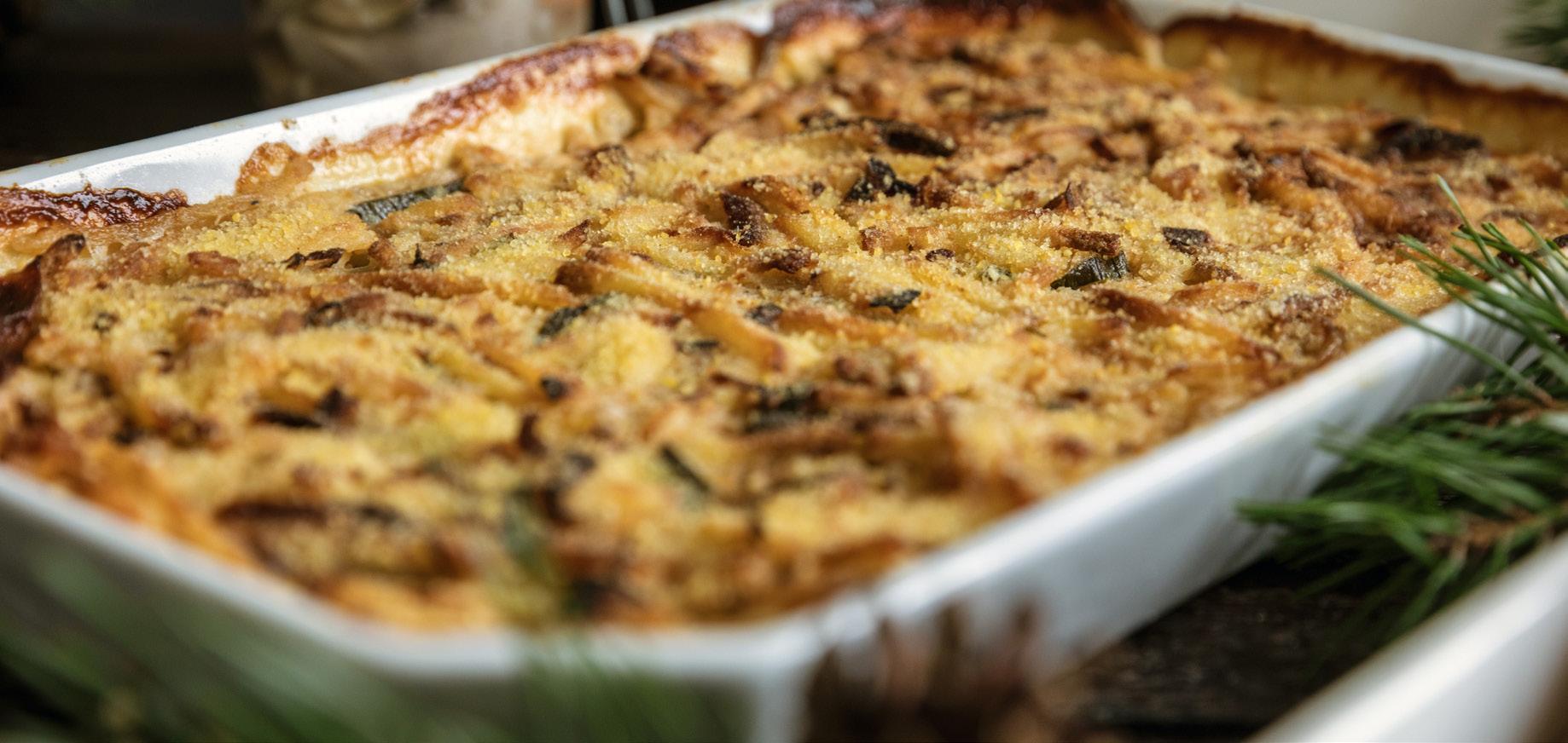 Preheat oven to 250˚C (425˚F). Peel and cut potatoes into strips. Peel onions and cut into thin slices. Sauté the onions in 1 tbsp butter until soft. Generously grease a deep, straight-sided ovenproof dish with butter. Cut or chop the anchovy fillets into small pieces—don’t hesitate to use scissors and remember this is not a fish dish, the anchovy is really there as a spice and will barely be detectable if you cut them into small pieces. Layer potatoes, onion and anchovies, ending with potatoes. Press down lightly to even out surface. Pour cream over the casserole, almost to top of potatoes. Sprinkle with anchovy brine. Finally, sprinkle with a generous amount of breadcrumbs and dot with butter. Bake about 45 minutes.