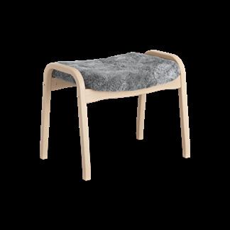 Footstool with wooden frame in beech, oak or walnut moulded veneer. Upholstery: sheepskin, fabric or leather