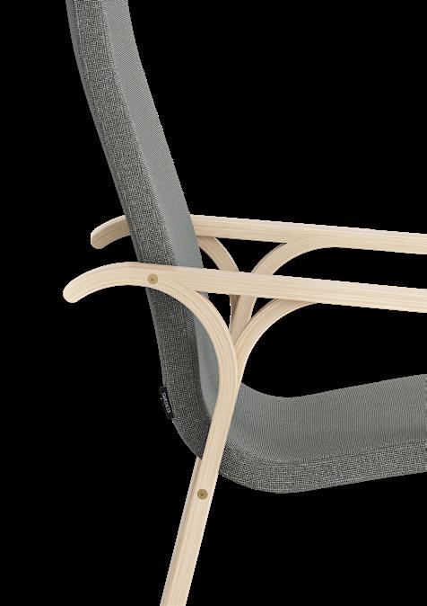 Easy chair with ash, oak or beech frame and birch finish. Available in two seat heights. Neck cushion purchased separately.
