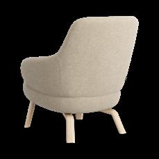 Easy chair with legs in oak, ash or beech, or legs in brushed aluminium. Available with 3 cm higher wooden legs. Buttons available in different colours.